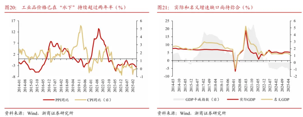供需协同发力,物价螺旋回落有望被终结,价格弹性的恢复将助推A股“更上一层楼”。国内PPI自2022年10月开始转负、CPI自2023年3月开始下破1%,工业品价格已在“水下”持续超过两年半,且2025年6月PPI较前值继续回落0.3pct至-3.6%。居民部门增加储蓄减少开支、房地产景气度快速下行、部分行业盲目增加产能、终端消费不足等因素,导致的低物价环境持续的问题被明显重视。