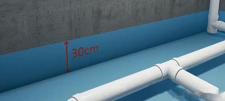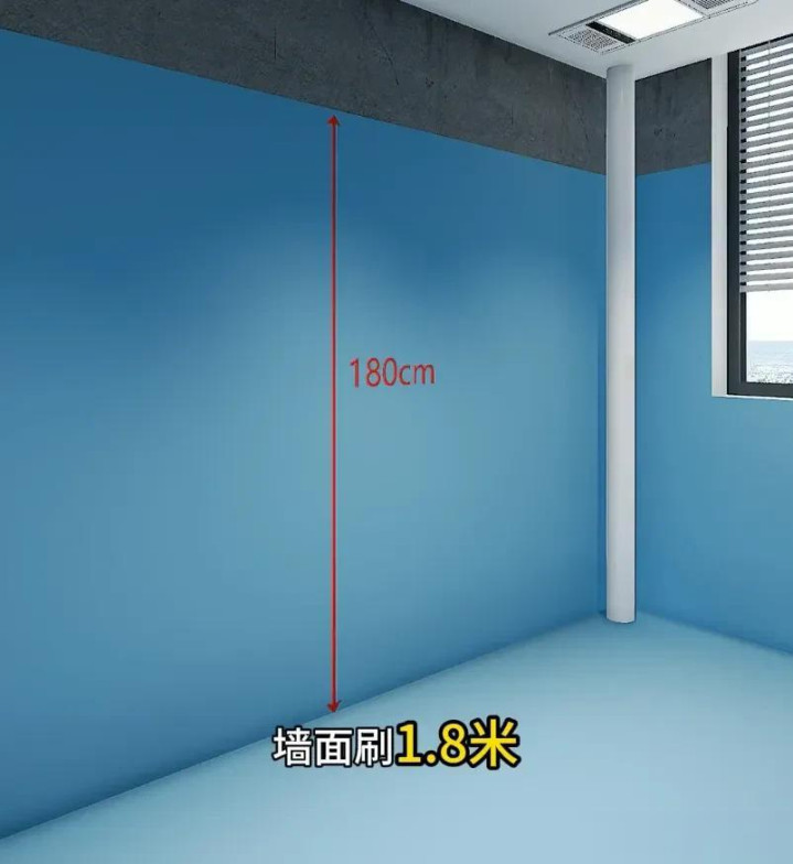 架空层干透后,刷第二次防水,这次墙面要刷到 1.8 米高(淋浴区建议刷到顶),确保淋浴时墙面不渗水。
