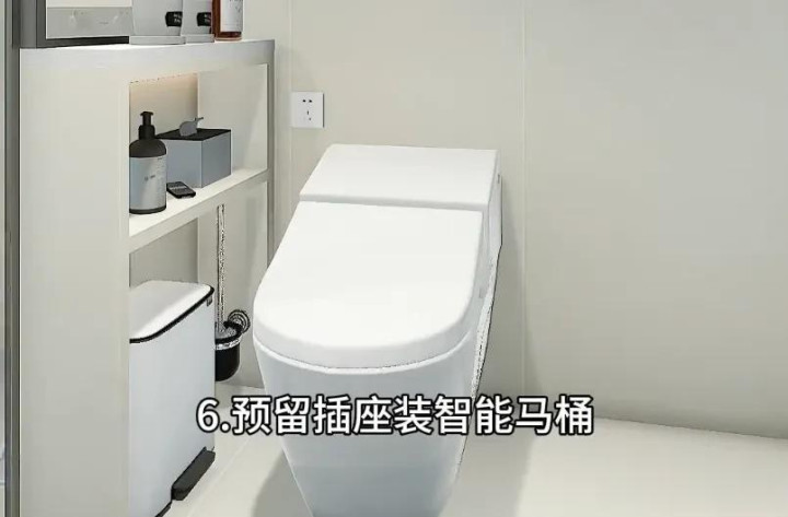 最后完善功能性家具。提前在马桶旁预留插座,方便装智能马桶(加热、冲洗功能都需要电);