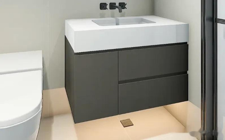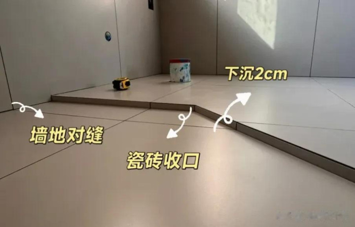 然后把淋浴区地面下沉 2-3 公分,形成 “干湿分离小台阶”;