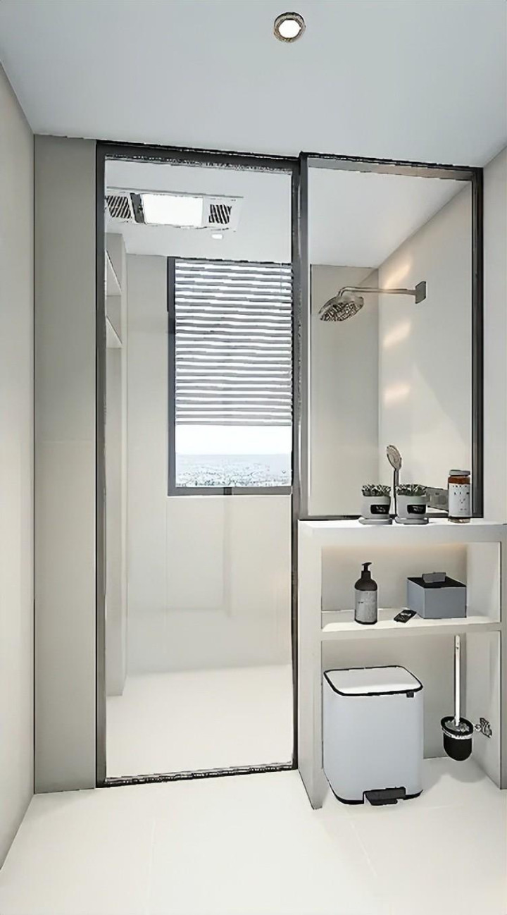 淋浴区另一侧装玻璃隔断,搭配推拉门,进出不占空间,还能把干湿区彻底分开,干区保持干燥不发霉。